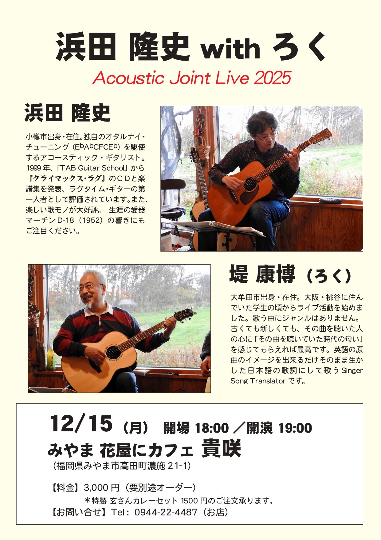 ■ 浜田隆史 12月の九州〜関西ソロツアー!