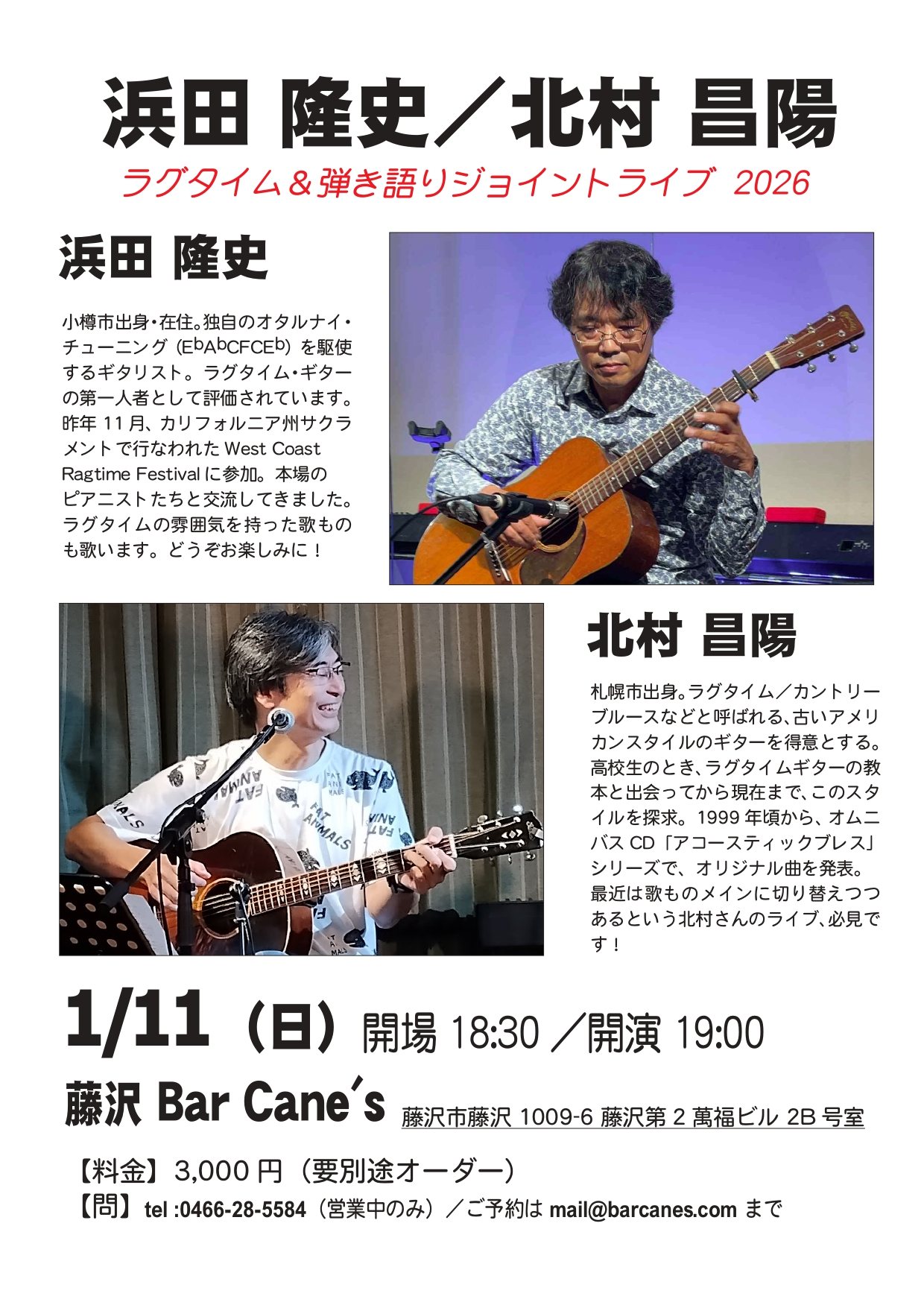1月11日(日)藤沢 バーケインズ(with 北村昌陽)