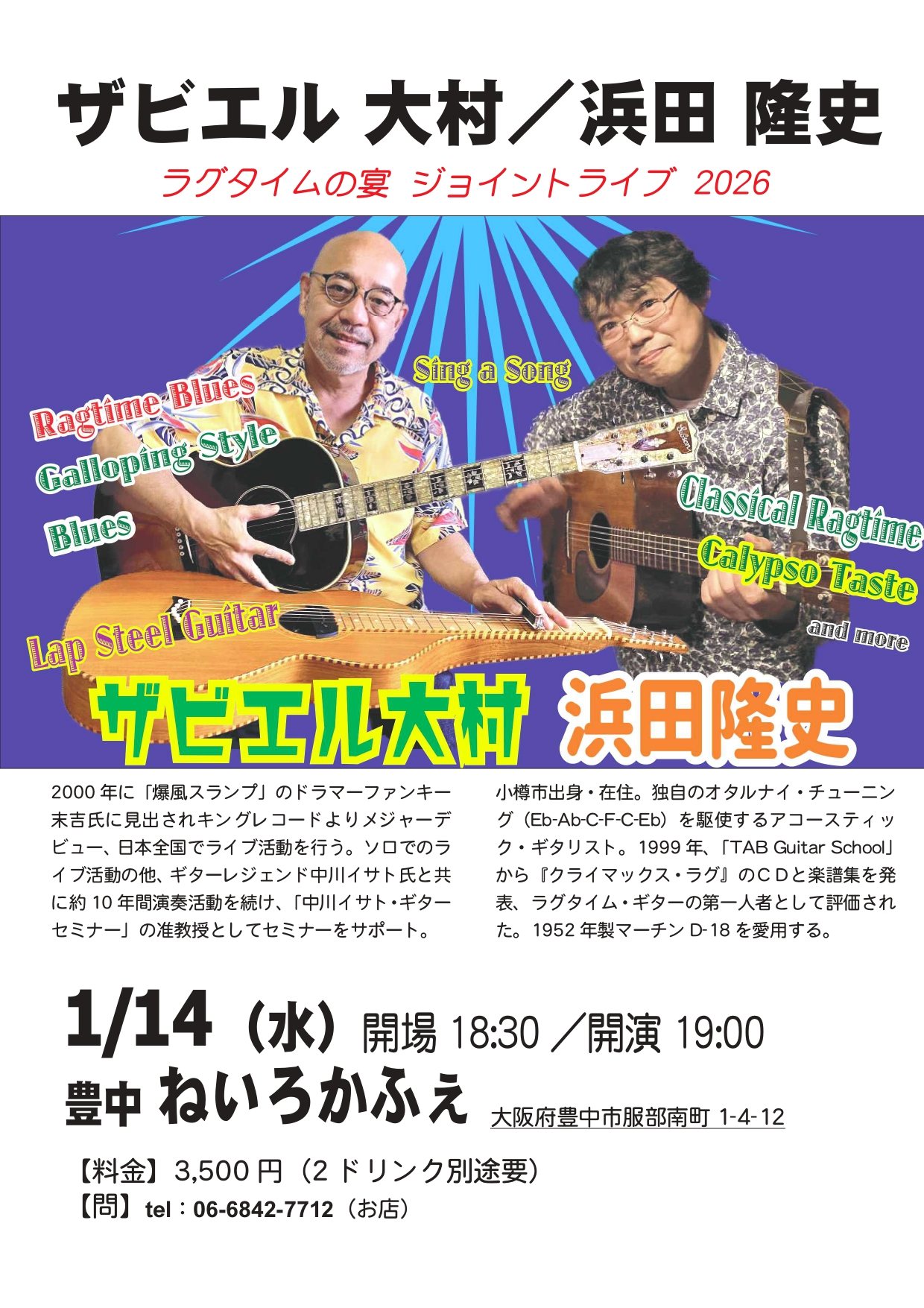 1月14日(水)大阪 ねいろかふぇ(with ザビエル大村)